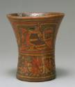 Kero (drinking cup) with figure presenting textiles