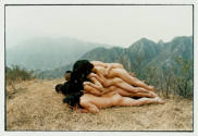 Label TextChinese language and culture abounds with proverbs—for example, the cheer for repetitive labor, “As long as you persist, you can file a metal pole into a needle.” Here, several naked bodies lie flat in a pyramid against a misty background of jade-colored mountains. This work documents a 1995 performance referencing the Chinese adage, “Beyond the mountain, there are higher mountains yet,” commonly uttered as a reminder to have humility because there is always someone more talented than you.