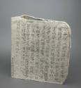 Label TextThe Heart Sutra, a popular Buddhist text that summarizes Buddha’s wisdom, is incised onto this ceramic sculpture’s surface. The artist inscribed Chinese characters for the sutra text and added a final line of a rhythmic Buddhist chant (“Ah jae ah jae ba ra sa ah jae”) in Hangul, the Korean alphabet. A result of Yoon Kwang-cho’s devotion in Buddhist practice, the object emulates 16th-century Buncheong ware, which typically has a coarse gray body decorated with white slip.