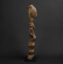 Label TextAn impassive face overlooks the bulges and constrictions that have taken rhythmic hold of this body. The tension between a serene mind and surging limbs is a distinctive feature of sculpture from the Lagoons peoples. Careful attention is given to the details of body art that were also common to that region. An elongated coiffure, torso scarification and medicinal keloids on the neck are carved with exacting refinement. Such features were dictated by a spirit who asked to be materialized as a “person of wood” to intervene in human affairs. A figure of this type might have housed a forceful bush spirit, an otherworld mate, or a diviner’s helper. Owners maintained daily contact with the figure who served as a locus for consideration of personal difficulties.