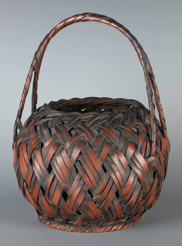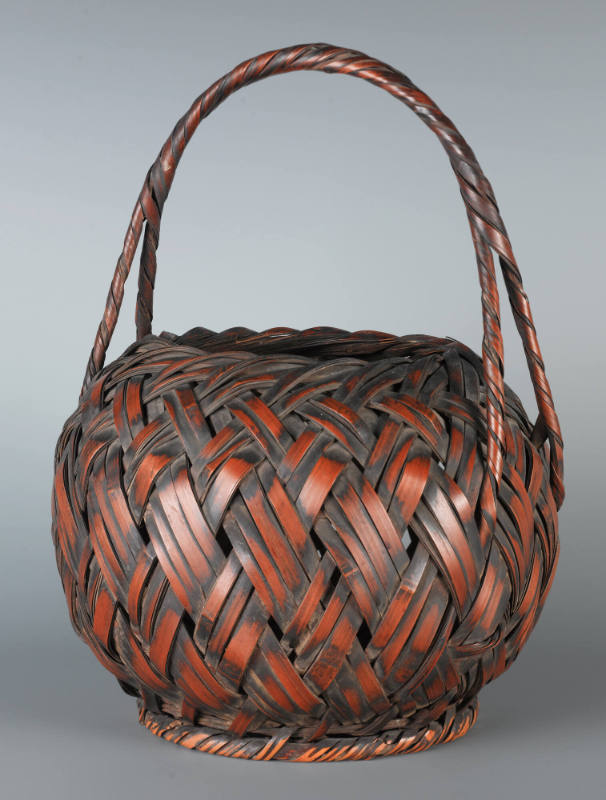 Label TextJapanese basketry is an ancient craft form dating back some 2000 years. To a large extent, bamboo was an obvious material. Bamboo groves were (and still are) found in abundance across the country; the material itself is light, strong and fairly pliable, making it naturally suited to weaving. The earliest baskets were humble utilitarian vessels, used for storage and as portable containers. Bamboo baskets used for ikebana (flower arrangement) and the tea ceremony (chanoyu) became part of the aesthetics of chanoyu, elevating these humble wares to objects of artistic interest. In the early part of the 20th century, the mingei (folk art) movement led to a revival of interest in traditional Japanese crafts. Along with this, bamboo basketry came to be seen as more than “mere” craft; it was now a prestigious art form embodying a distinctly Japanese aesthetic identity. It is worth noting that geometric patterns on Japanese baskets are correspondingly found on textile, ceramic, and lacquerware designs, testament to a common aesthetic sensibility amongst the respective practitioners. Japanese bamboo baskets have been the subject of major exhibitions in recent years, such as the ones at the Museum of Fine Arts, Boston (2006) and at the San Francisco Asian Art Museum (2007), which owns the renowned Cotsen collection of more than 900 baskets.