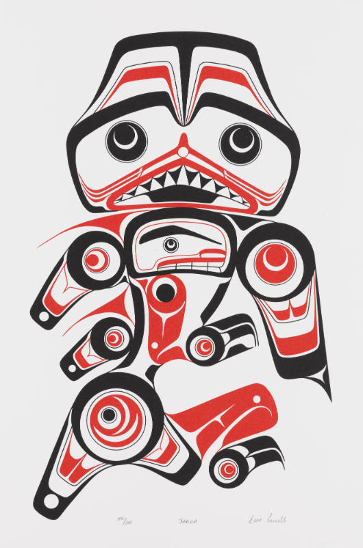 Label TextSince the 1960s, Northwest Coast Native artists have used the printmaking medium to explore ideas and designs beyond those possible in carving, painting and weaving. Graphic works have been a vehicle to both discover traditional design and to push against its constraints.