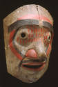 Label TextCelestial entities and allusions to cosmic occurrences figure prominently in Nuxalk ceremonials. This mask is reminiscent of another recorded as Xe’mtsiwa, herald of the dawn, and may have been worn by a kusiut dancer bearing this being’s name. It was thought that supernatural beings needed to be “awakened” and requested to make an appearance during ceremonies.