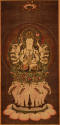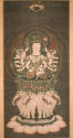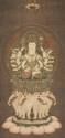 Label TextInvoked in the rite for longevity, this type of Fugen Enmei bosatsu (bodhisattva) has twenty arms, each holding a Buddhist ritual implement, including a vajra (pronged ritual object), a bell, and jewels. The deity’s power is also manifested by the four six-tusked white elephants he rides. On the head of each elephant stands one of the four directional guardians. The elephants stand on a large wheel representing Buddhist law, which is supported by thousands of smaller elephants.