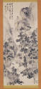 Label TextPaired side-by-side with the work of his father Beisanjin, this hanging scroll reveals the far more subdued, restrained style of Hanko. Although the two paintings share the motif of the solitary scholar amidst rugged mountains, the brushwork in Hanko's landscape is crisper, more delicate. Compare the swirling eddies of water in the father's work to the placid stream in his son's.