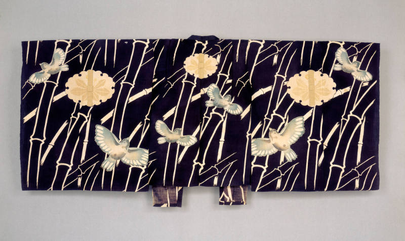 Cotton cloth and ribbon with Sumi dye and katazome