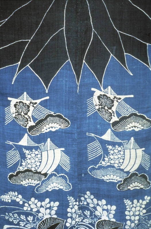 MediumBast fiber (asa) cloth with free hand paste-resist decoration (tsutsugaki) and paste-resist stencil decoration (katazome)