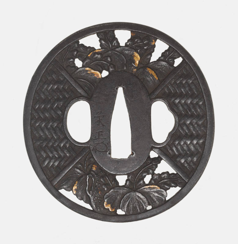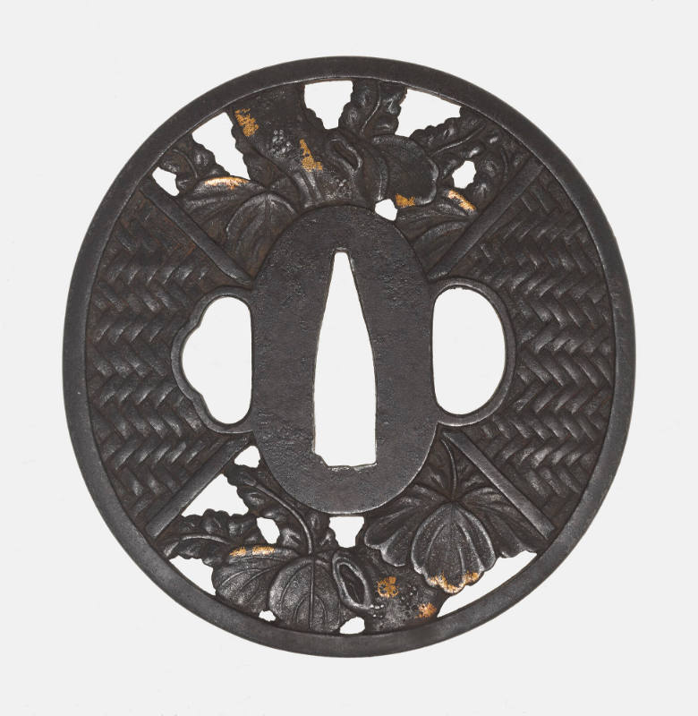 Tsuba: Paulownia Plants and Tree Trunk; Basket Weave