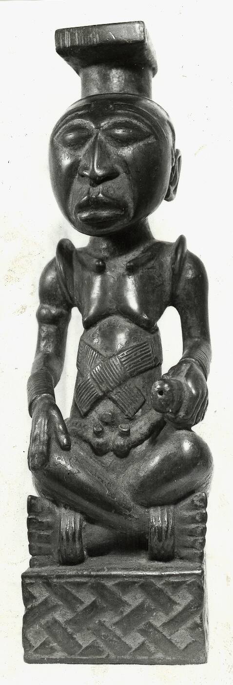 Statuette of Ngoulou-Viti seated cross-legged and holding a knife or beater