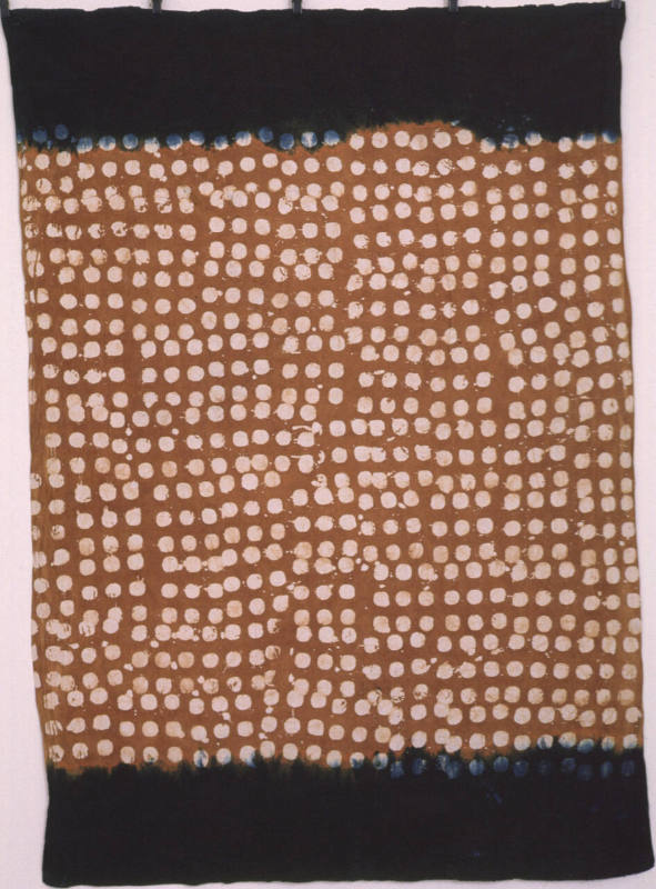 Repetition is taken for a ride on these cloths. Each pattern starts off with small designs placed side by side, duplicated over and over. Along the way, however, interruptions keep leading the designs astray. Cubes start to pile up on each other, dots collide and lines refuse to stay straight. This unpredictable visual pattern is considered by many to be a major element of the African aesthetic-a flair for accents that offer a percussive rhythm to visual and musical traditions. Here, a definite attraction to breaking routine is explored in cloths that were worn as skirts in West Africa.