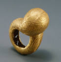 Label TextAsante instill meanings in what can seem to be mundane objects: the forms of peanuts, grubs, porcupines, knots and seed pods appear in golden splendor. Proverbs behind the rings suggest the wisdom in the ordinary.