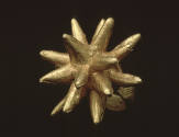 Label TextGold rings demonstrate how the Asante instill meaning in seemingly mundane objects. Royal regalia often combine rings with bracelets, necklaces, sandals, hats, cloths, staffs, swords, stools, and umbrellas. Each item is selected for display by an Asante who seeks the proper words to enhance a given situation. What the average museum visitor sees are images like gold peanuts, birds, grubs or porcupines, and knots. But viewers attuned to the proverbs behind the rings begin to see the wisdom in the ordinary.
