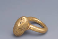 Label TextAsante instill meanings in what can seem to be mundane objects: the forms of peanuts, grubs, porcupines, knots and seed pods appear in golden splendor. Proverbs behind the rings suggest the wisdom in the ordinary.