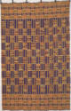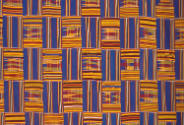 Label TextMmeeda patterns convey a notion of how cloth is used to mark history. An Asante dictionary translates mmeeda as "something unheard of, unprecedented, extraordinary." Other sources rephrase this to mean "something that has not happened before." Researcher R. S. Rattray recorded it as asonawa mmada and said it originated from the name of the first clan to father an Asante king. Kwame Nkrumah was a force in world politics, leading the first successful transition from colonial to independent government in twentieth-century Africa. Nkrumah wore a Mmeeda kente cloth on February 12, 1951, the day he was released from a year's prison term for sedition against the colonial government. Wearing an Mmeeda was an omen for the next decade of Nkrumah's career as he led Ghana to independence on March 6, 1957 and became its first president in 1960. "I have learned through my parents to admire kente and to appreciate that, for most Ghanaians, kente cloths are heirlooms. They are precious treasures given on significant occasions and hopefully passed down from mother to daughter, uncle to nephew, father to son." (Abena P.A. Busia, 1999) Kente is perhaps the best known of all African textiles. These strip-woven cloths speak of authority and rank through their carefully inserted patterns, of which over three hundred warp-and-weft variations have been documented. The names given to Asante kente vary: named after important chiefs, queen mothers, historical events, plants, animals, and proverbs. Kente is most frequently seen at festivals in southern Ghana and Togo and has its origins in the regalia of the Asante and other Akan groups. By the late nineteenth century it was often found in non-royal arenas and by the end of the twentieth century it was available to anyone who could afford it. In America, kente has emerged as a potent symbol of identification with Africa. A kente cloth, or its representation, is seen at African American graduations or other ceremonies honoring people for their accomplishments. Other uses of kente, however, have disturbed some Ghanaians, who see a distinctive cloth being marketed as a commercial symbol for all things African.