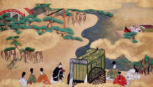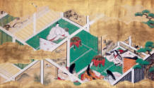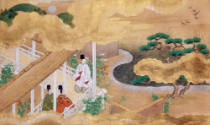 Label TextThe Tale of Genji was written in the 1000s by Murasaki Shikibu, a lady-in-waiting at the imperial court in Kyoto. It details the trials of Genji, a cavorting young courtier. This set of handscrolls includes a passage of text and illustration for each of the tale’s fifty-four chapters. The paintings offer glimpses of the daily lives of courtiers, including meticulous detailing of the textures and colors of interior furnishings, décor, and fashion. Beginning in the 1400s, generations of painters of the Tosa school received patronage, primarily from members of the aristocracy.