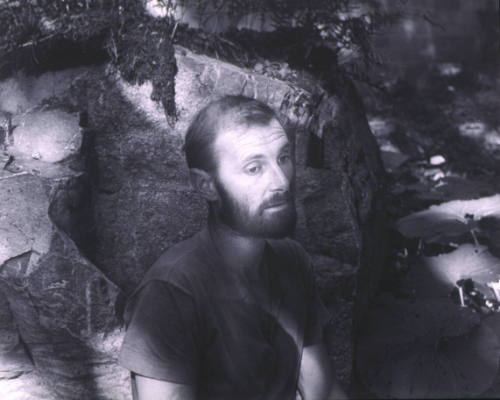 Label TextDuring the 1950s, Cunningham photographed a number of artists, poets, and writers both on the West and East Coasts. In this psychologically penetrating portrait of Northwest artist Morris Graves, she had spent a day with him on his private property located outside of Seattle, and produced this deeply introspective image. Over three decades, Cunningham would return to this subject, photographing him on a number of occasions and creating works of great intensity, calm, and solitude, as expressed in the adjacent portrait of Graves in his garden.