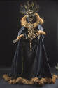Label TextBasinjom suddenly appears like a mystic hovercraft, to assault negative personalities. Raising the front of his gown, Basinjom is accompanied by a small orchestra and many witnesses. He stalks evil in the audience of villagers and is likely to confront a person known for extreme selfishness or deceit. He recites the misdeeds or nasty words of the person in question, demanding confessions, and publicly humiliates the guilty.