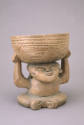 Label TextIn contrast to the calm dignity of the Kom nobleman nearby, this squat figure is subsumed by his task-he ends up with no neck and with legs pooling around his hefty torso. Above him, a stand once held a calabash of palm wine, a drink specially offered during ceremonies.