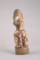 Label TextA tall cap called mphemba indicates that this mother is worn by an illustrious woman who took on unusual power and responsibility. Her lips part to reveal cosmetically filed teeth and she wears only a tight, beaded cord around her chest. Such figures were placed on tombs of powerful women and could be petitioned in times of trouble.
