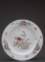 Label TextThe shaded pink enamels of the floral decoration on this English plate reflect a new taste and palette inspired by Chinese porcelain (no. 22). The Europeans later named this new Chinese pink style famille rose. The pink enamel uses colloidal gold as its colorant.
