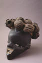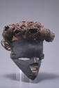 Label TextCane balls have been wound tightly to create a headdress for this mask. It is not known if the balls refer to tufts of hair or not. Pointed teeth represent the practice of filing teeth, a process which tested strength and discipline during the initiation of young men.